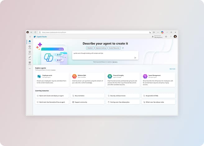 Design, customize, and manage AI applications and agents at scale with Microsoft Foundry models, tools, and services, built into the developer tools you already know - GitHub, Visual Studio, and Copilot Studio.