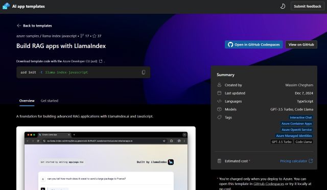 AI 应用程序模板入门。 使用 VS Code 或 GitHub Codespaces 编辑并部署到 Azure。